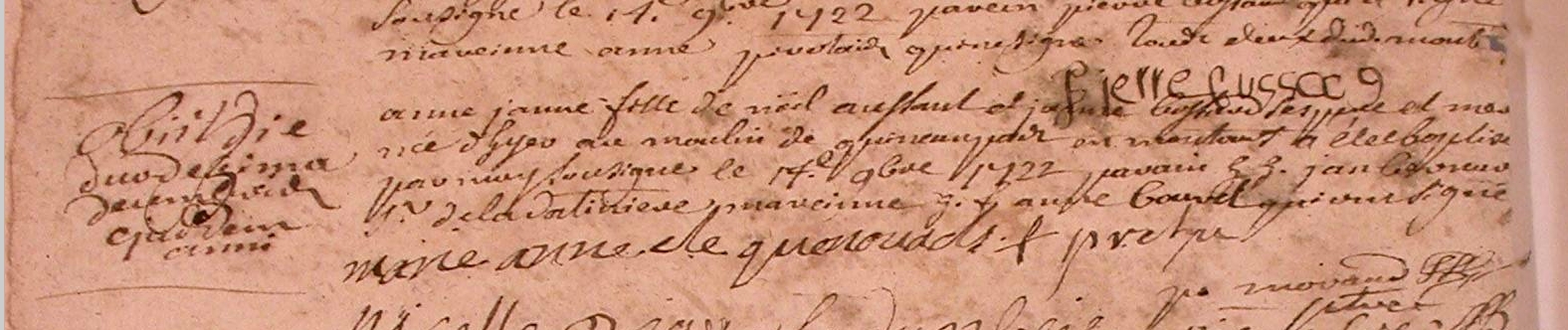 Baptême : 17 novembre 1722 à Montours 35460 Moulin de Quineaupart