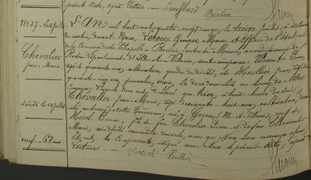 Naissance : 1823 à Goven 35580 Décès : 12 juillet 1891 à La Chapelle-Bouëxic 35330 Bourg