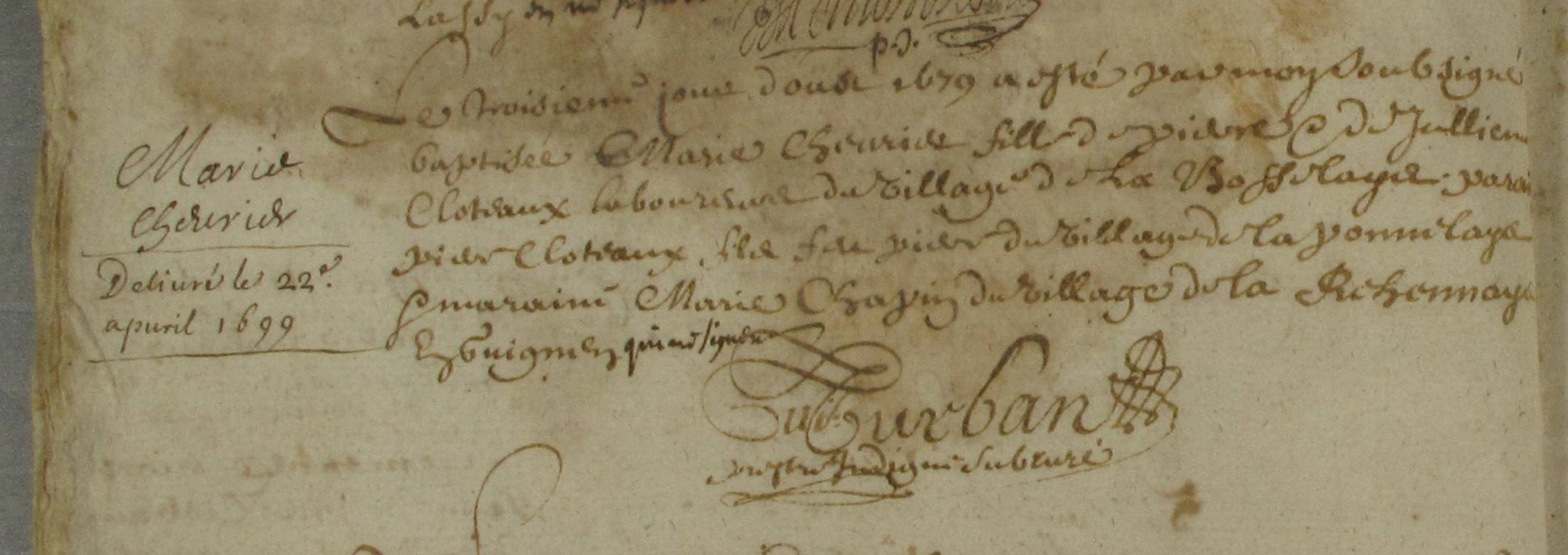Naissance : calculée 1676 Décès : 17 février 1692 à Lassy 35580 Village de la Bosselaye