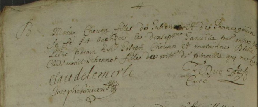 Père : CHOUAN Julien ( < 1672 - <> 1700 & 1722 )