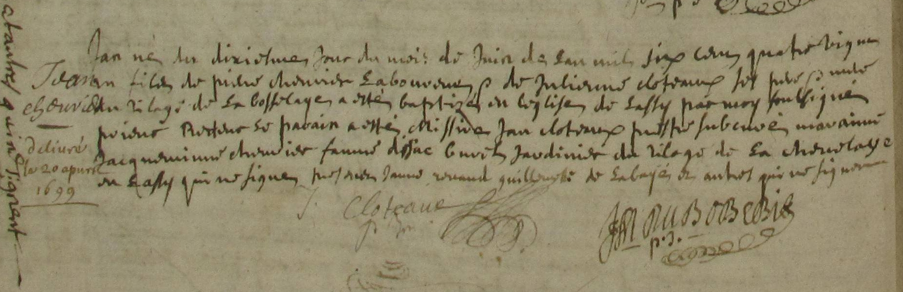 Témoin :CLOTEAUX Jean ( < 1643 - > 1681 )