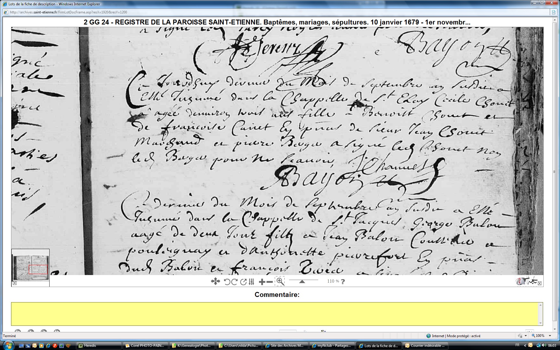 Naissance : calculée 1674 à Saint-Étienne 42100 Décès : 30 octobre 1676 à Saint-Étienne 42100 Paroisse Saint-Etienne