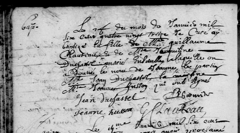 Mère : DUCHASTEL Jacqueline ( (c) 1671 - 1693 )
