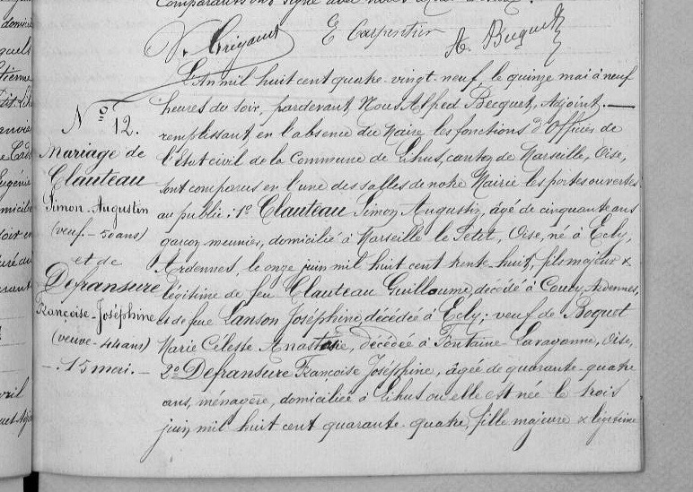 Mariage : 15 mai 1889 à Lihus 60360