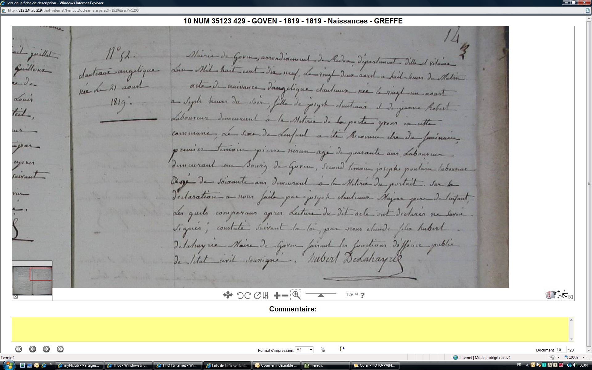 Naissance : 21 août 1819 à Goven 35580 Métairie de la Porte Yvon