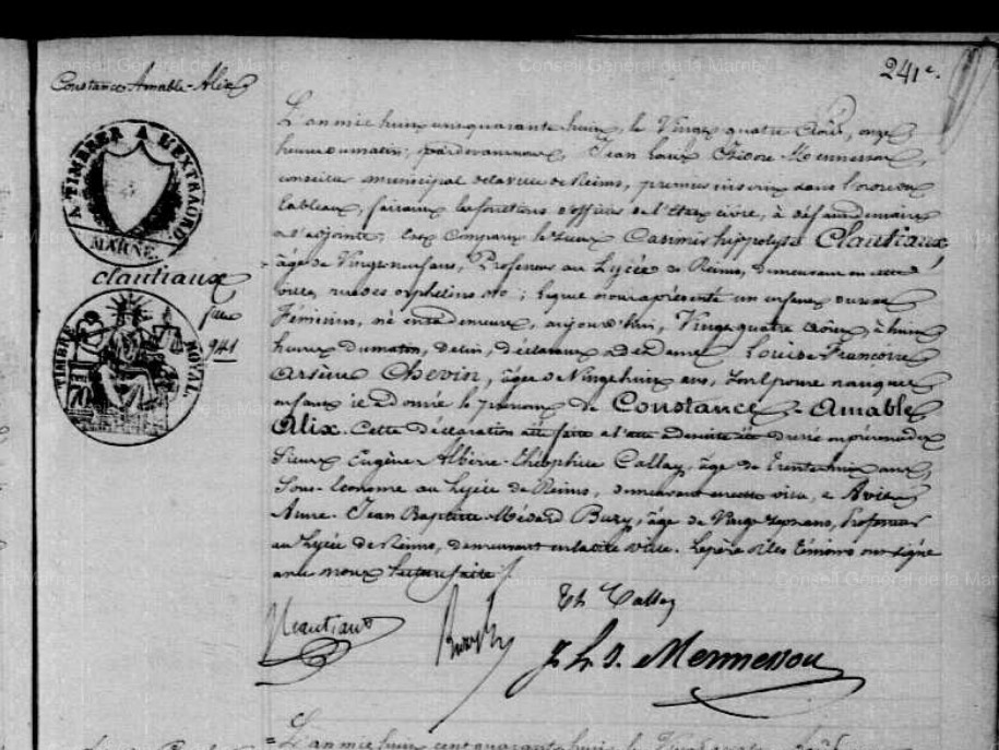Témoins :CLAUTIAUX François Casimir ( 1796 - 1877 )