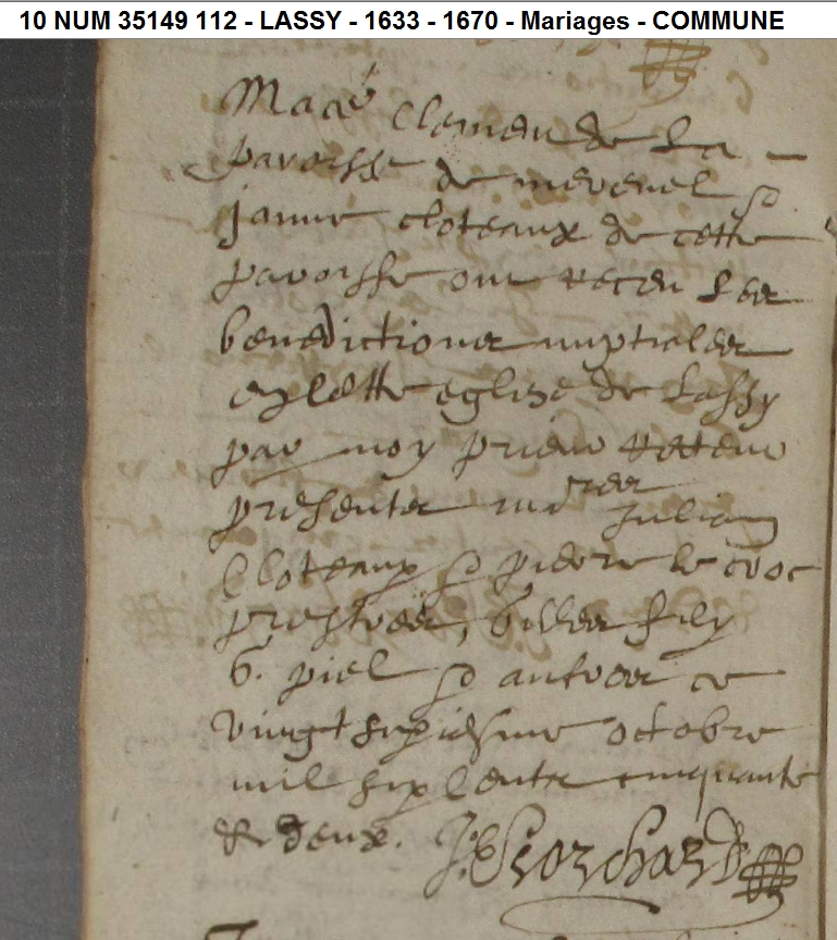 Mariage : 26 octobre 1652 à Lassy 35580