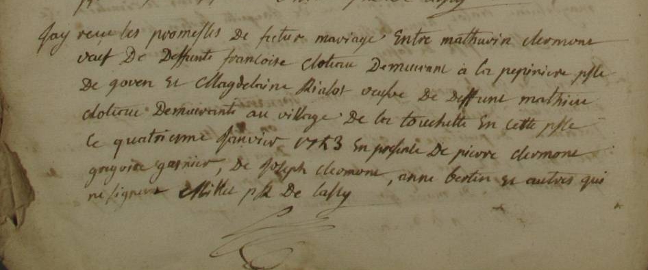 Promesse de mariage : 4 janvier 1753 à Lassy 35580