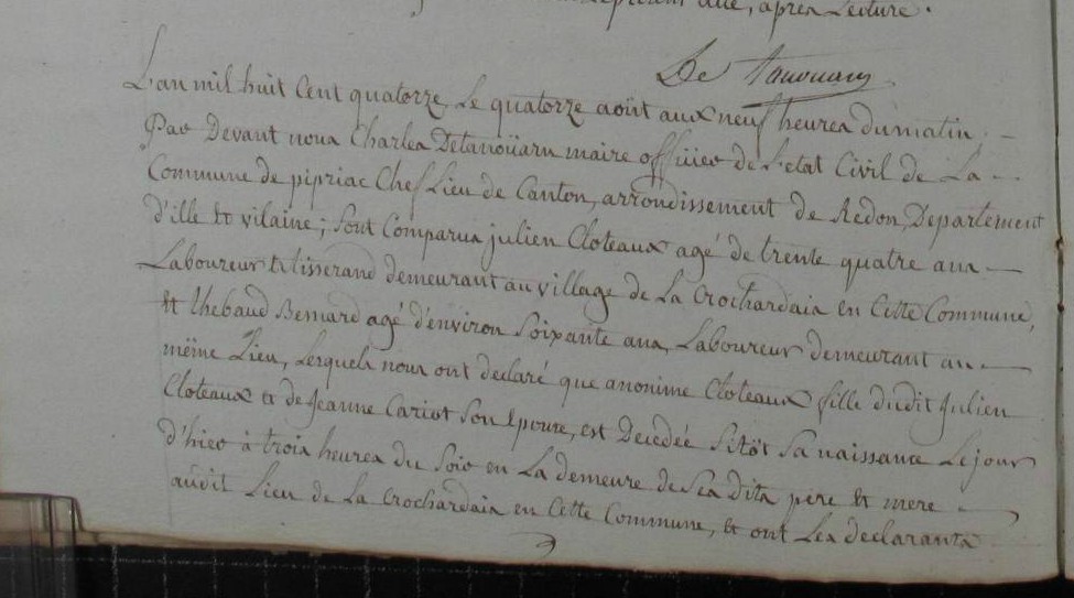 Décès : 14 août 1814 à Pipriac 35550