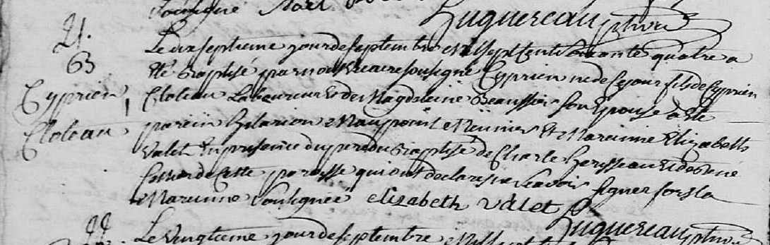 Père : CLOTTEAU Cyprien ( 1718 - 1778 )