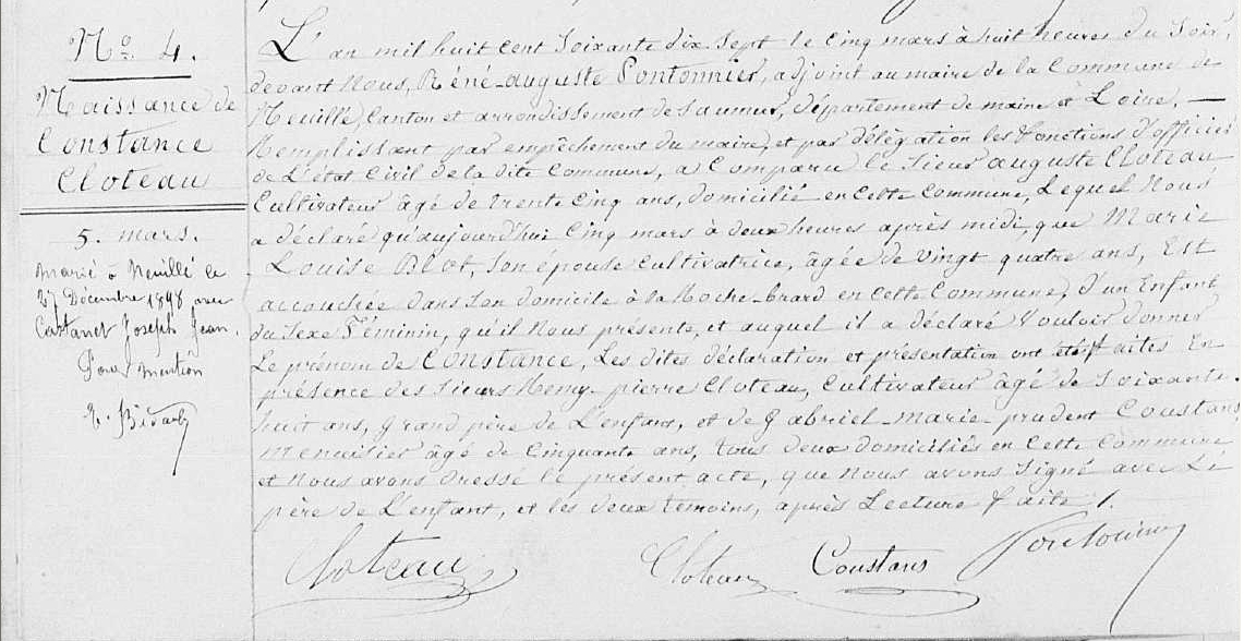 Dans la table décénale de Neuillé et sur l'acte de naissance de Constance