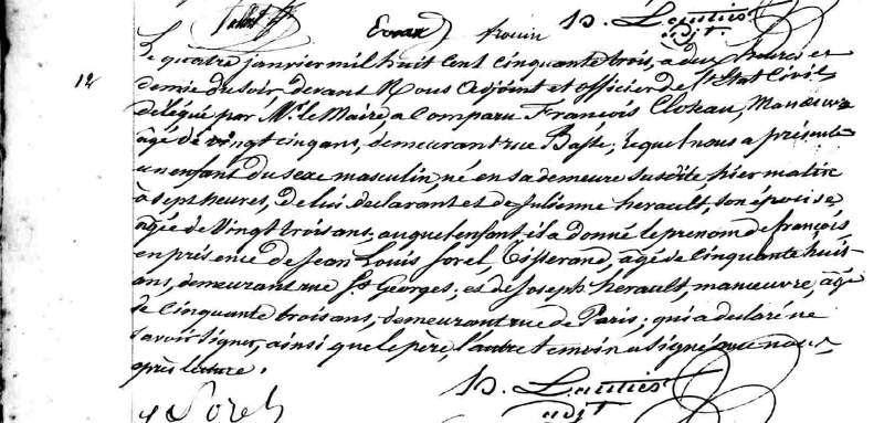 Témoins :SOREL Jean Louis ( ~ 1795 - > 1853 )