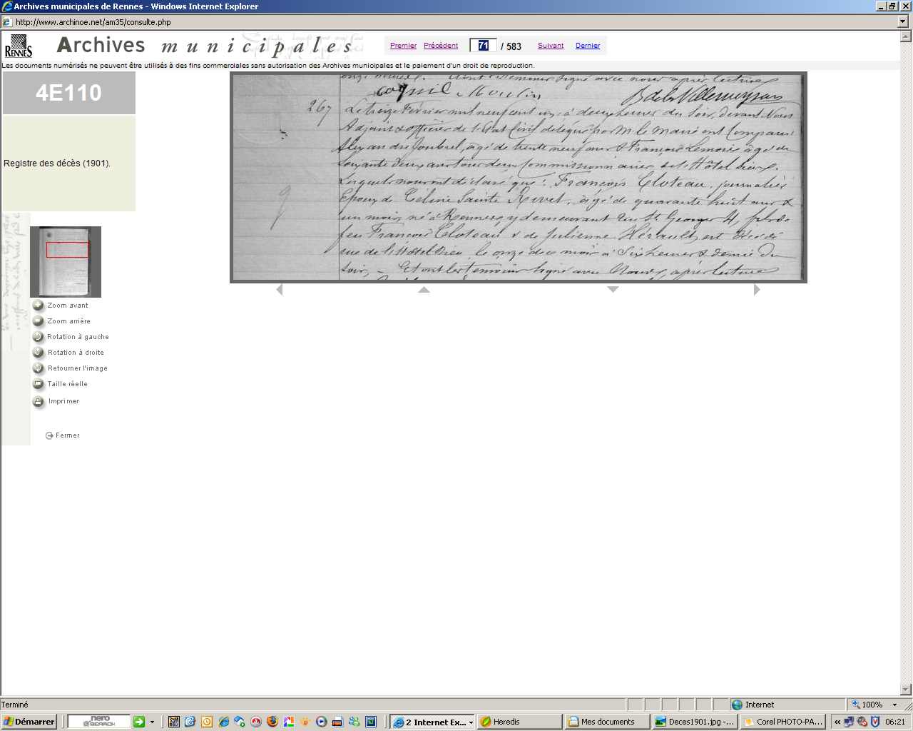 Décès : 11 février 1901 à Rennes 35000 Hôtel Dieu