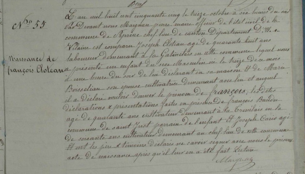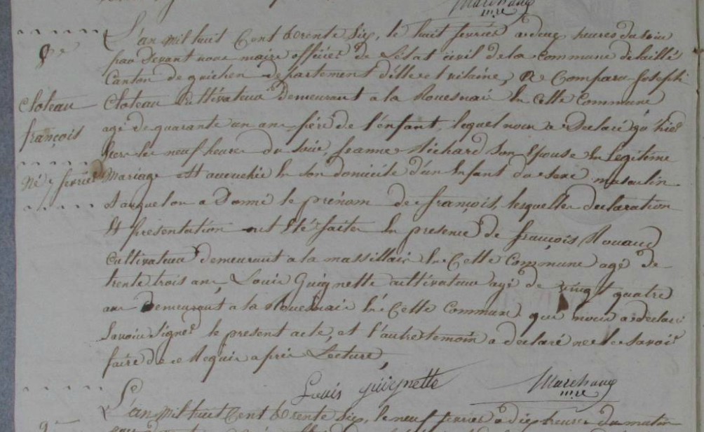 CLOTEAU à la naissance de François