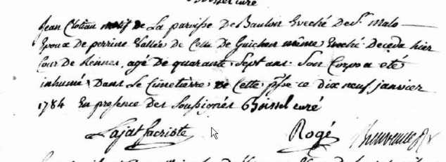 Décès : 26 février 1762 à Lassy 35580 Village de la touchette