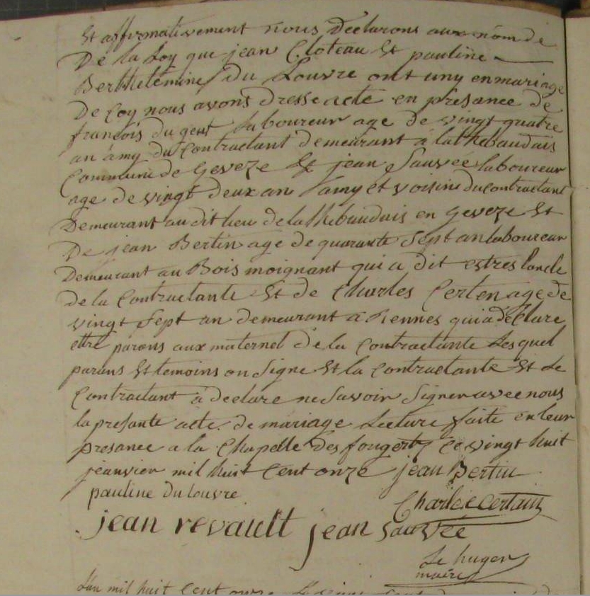 Mariage : 28 janvier 1811 à La Chapelle-Des-Fougeretz 35520