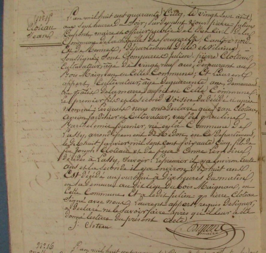 CLOTEAUX Jean Marie ( 1790 - ? )
