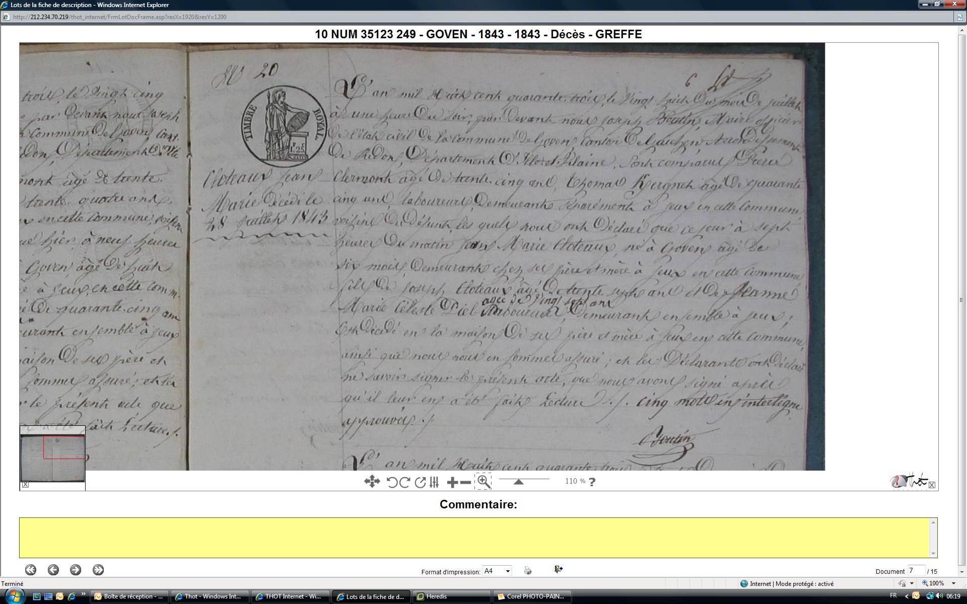 Décès : 28 juillet 1843 à Goven 35580