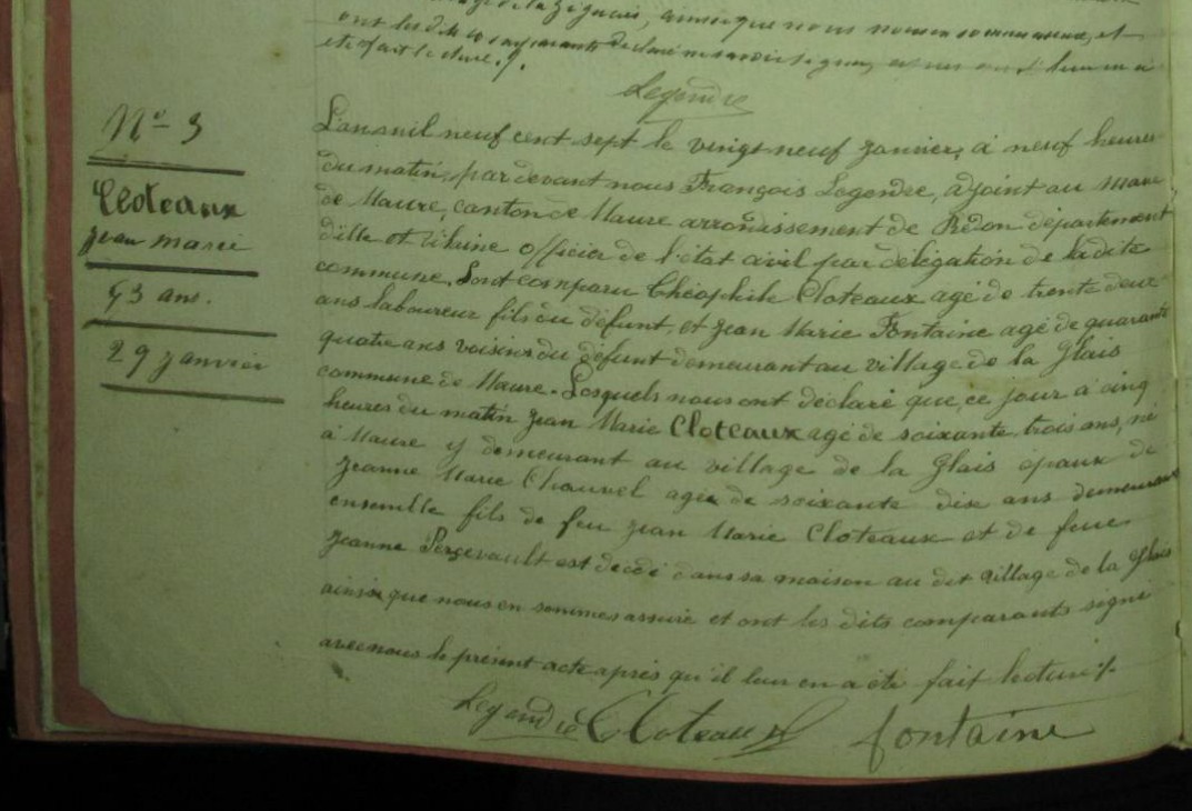 Décès : 29 janvier 1907 à Maure-De-Bretagne 35330 Village de la Glais