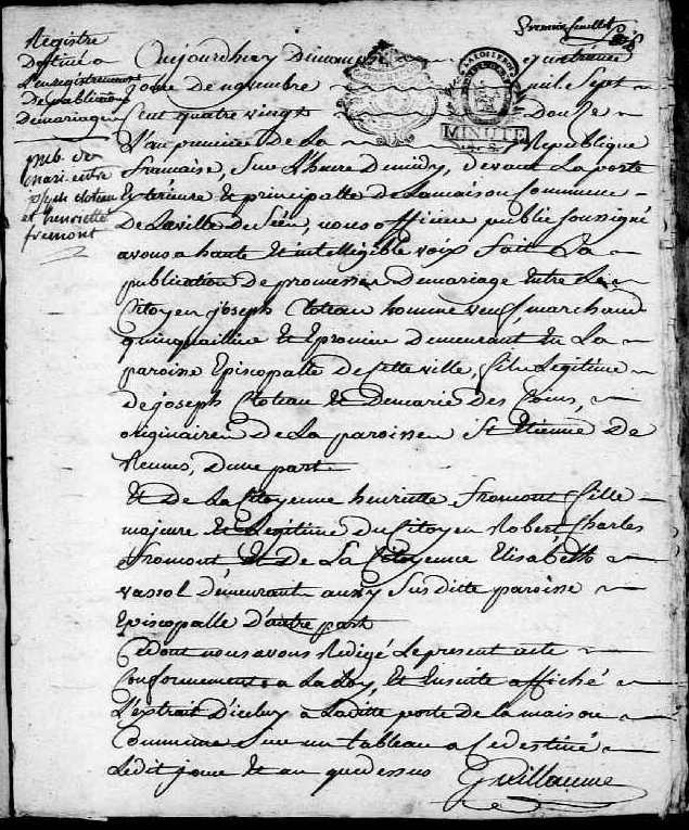 Union 3 : FROMONT Henriette ( ~ 1767 - > 1796 )