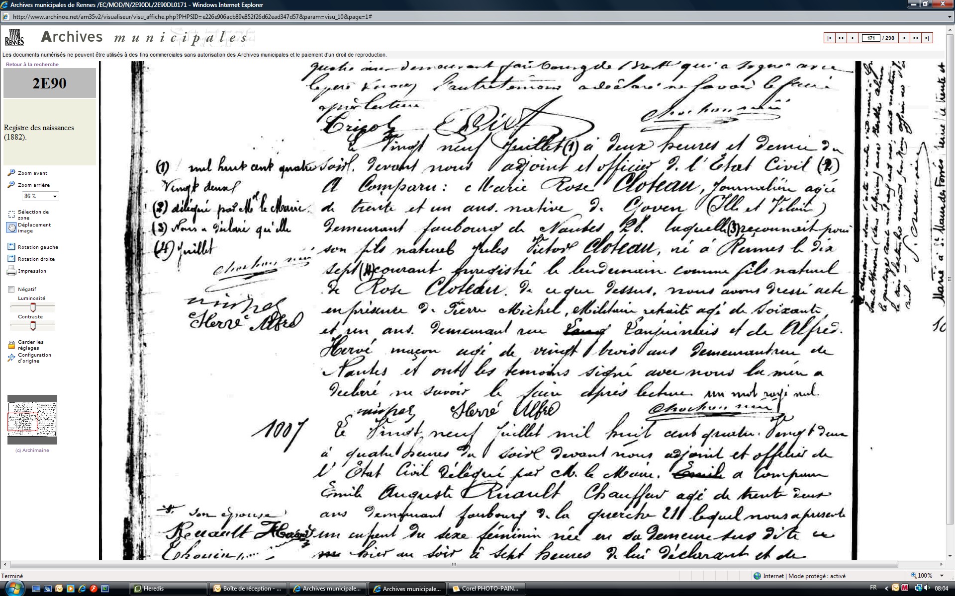 Reconnaissance : 29 juillet 1882 à Rennes 35000