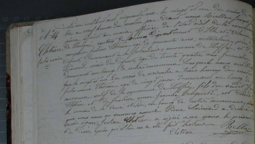 Décès : 21 novembre 1856 à Thorigné-Fouillard 35235 Thorigné sur Vilaine