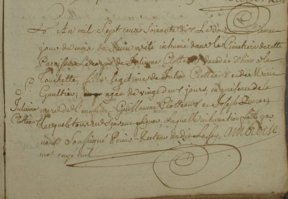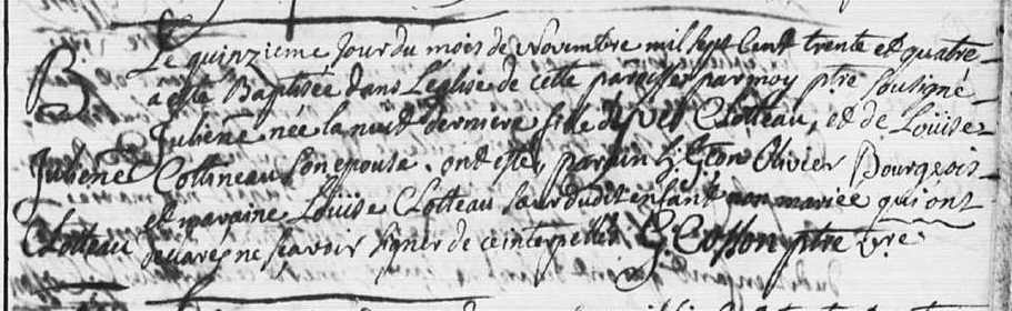 née CLOTTEAU Julienne 1734 Les Touches