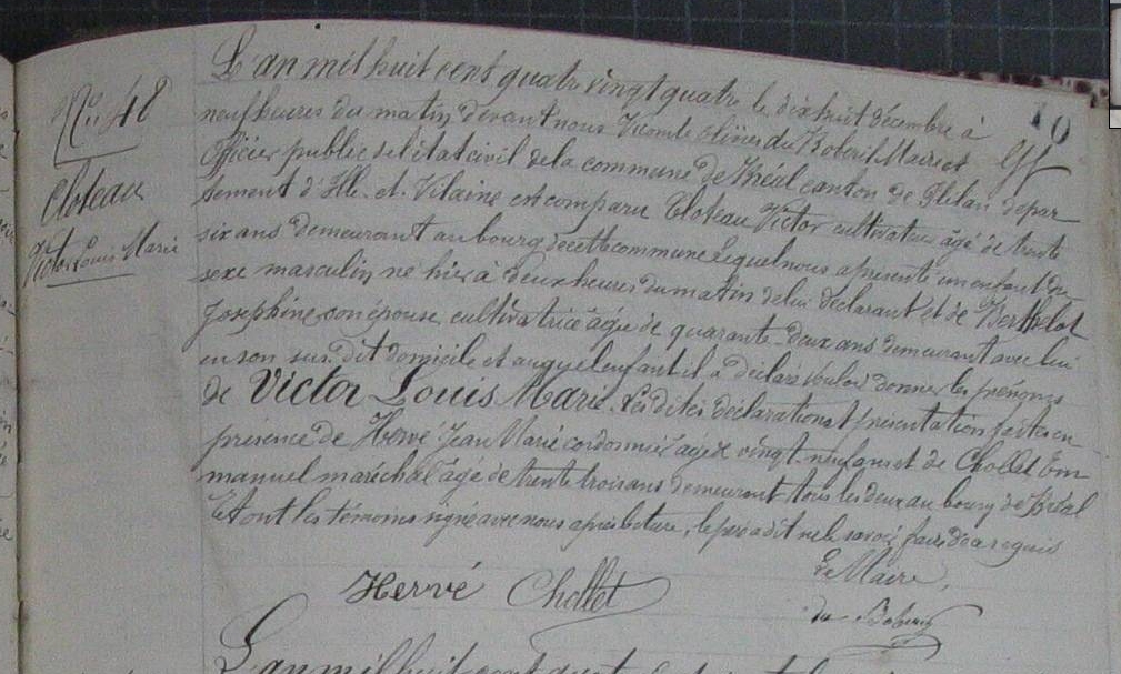 Naissance : 17 décembre 1884 à Bréal-Sous-Montfort 35310