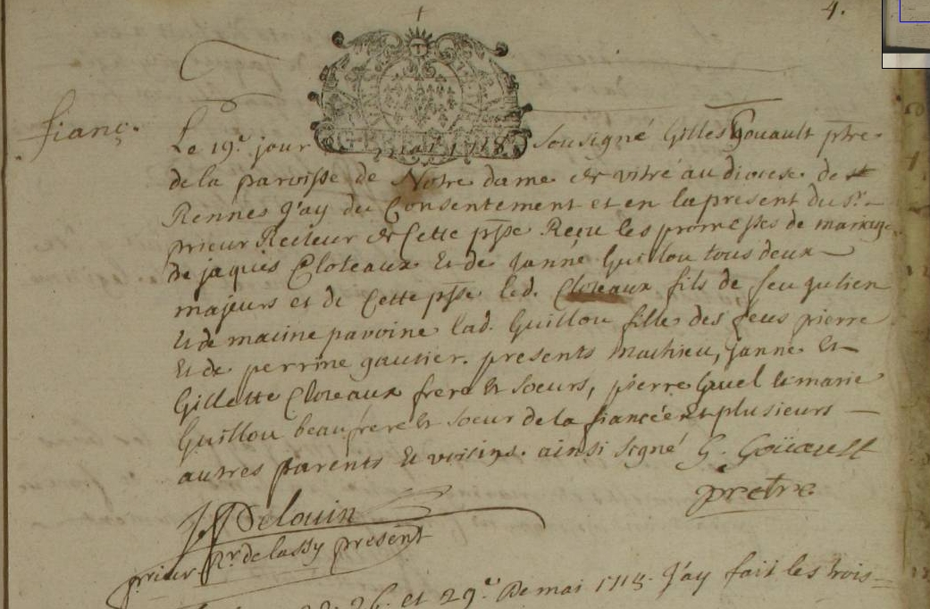 Père : CLOTEAULT Julien ( 1652 - 1718 )