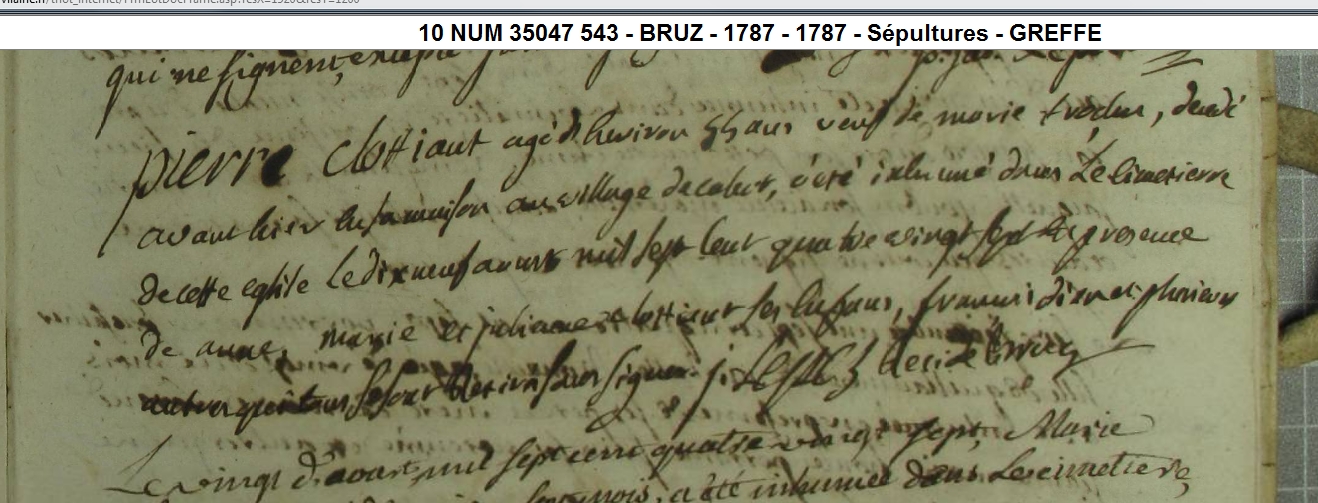 vers 1732 d'après son décès!Inhumation : 19 août 1787 à Bruz 35170 Village de Cahot