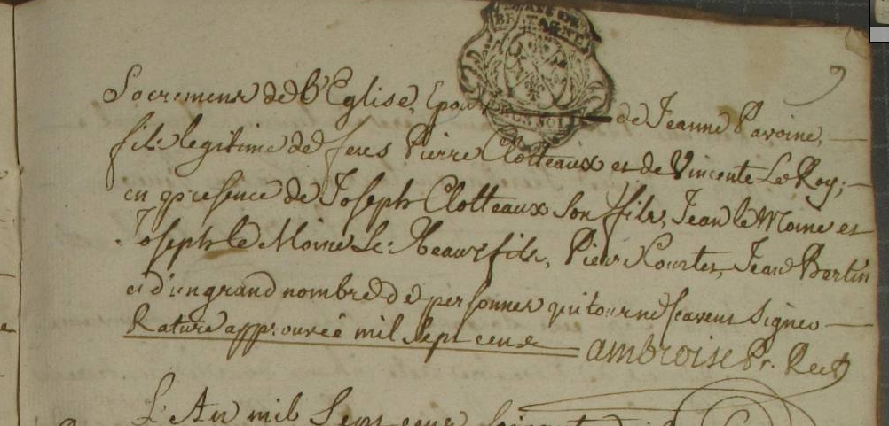 Père : CLOTEAULT Pierre ( 1661 - 1722 )
