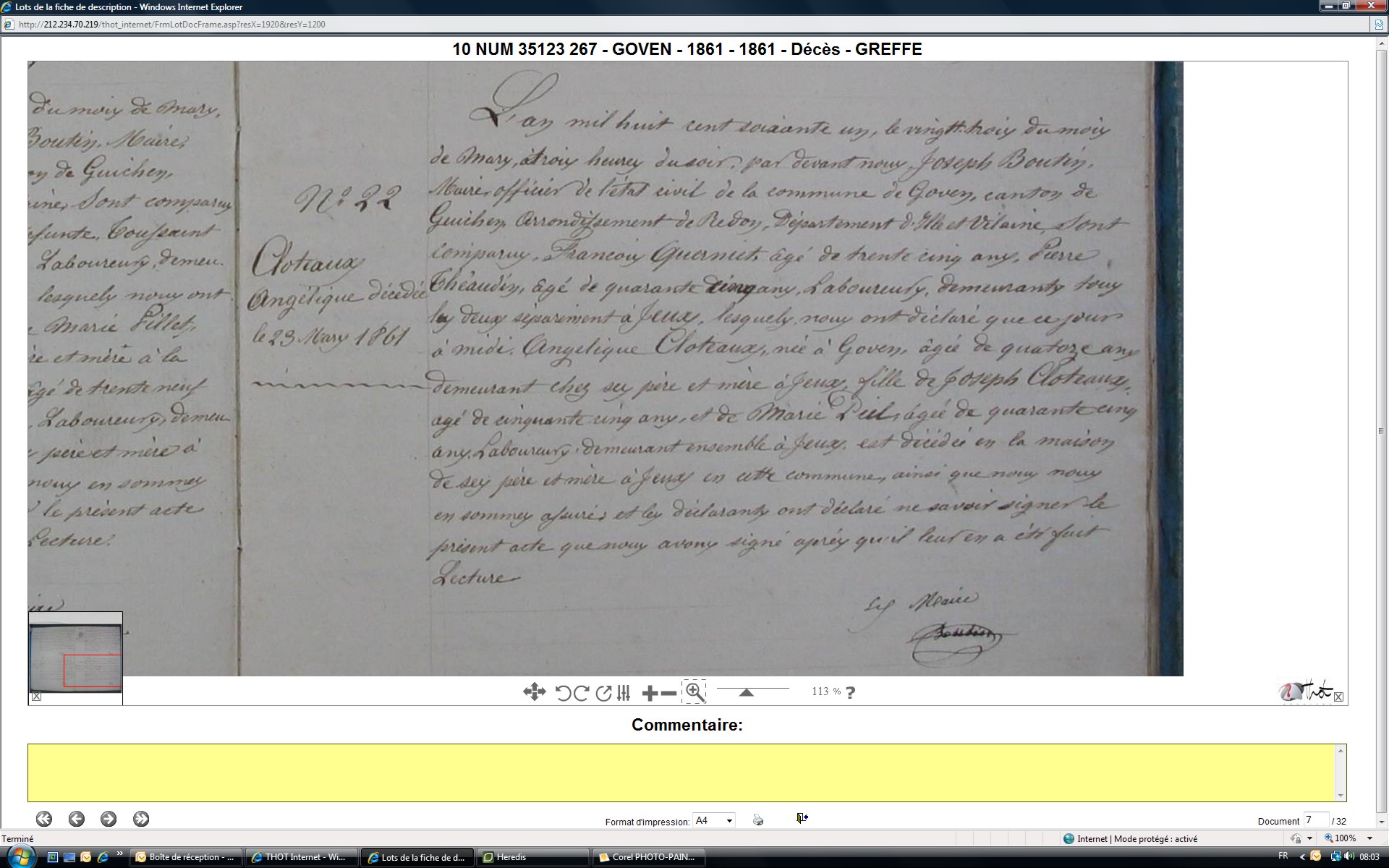 Décès : 23 mars 1861 à Goven 35580 Jeux