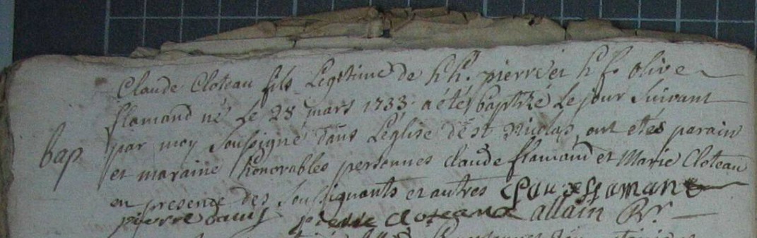 Autre enfant : CLOTEAUX Guillemette ( ~ 1705 - > 1725 )