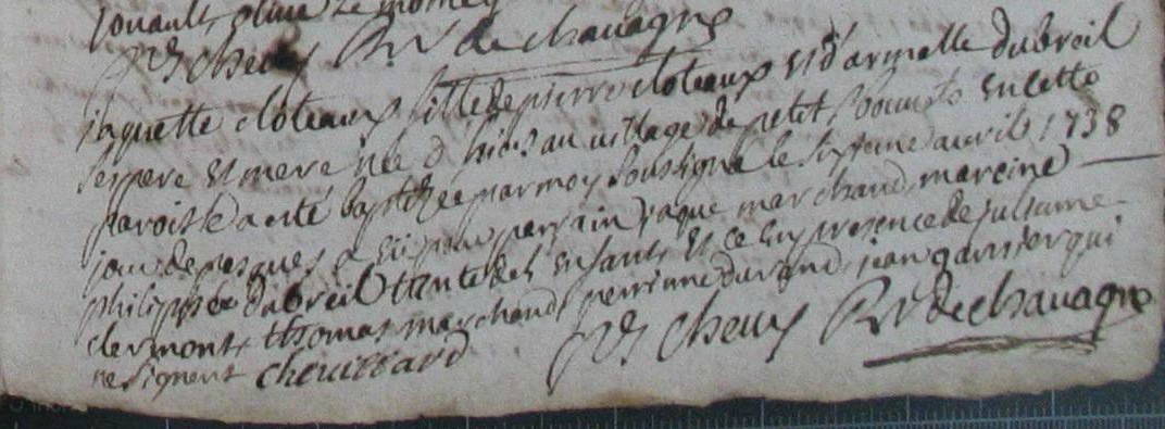 Naissance : 5 avril 1738 à Chavagne 35310 Baptême : 6 avril 1738 à Chavagne 35310 le petit bouvet