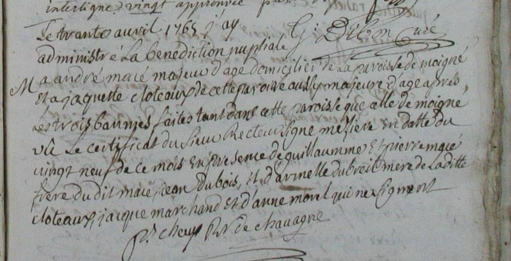 Mariage : 30 avril 1765 à Chavagne 35310