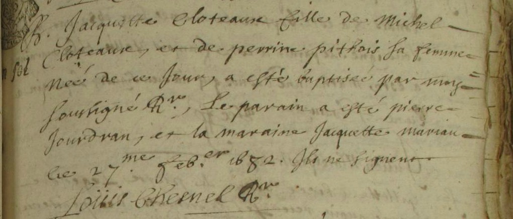 Père : CLOTEAUX Jean ( ? - > 1668 )