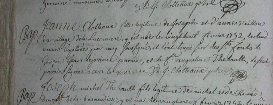 Père : CLOTEAU Joseph ( < 1735 - <> 1761 & 1779 )