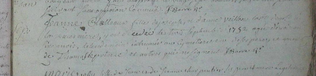 Nom et prénom de la marraine Cloteaux JanneDécès : après 1769