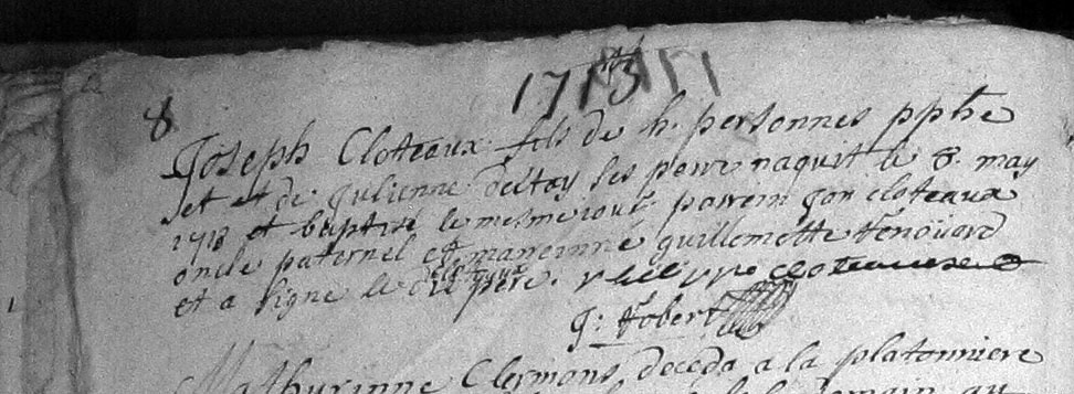 Père : CLOTEAUX Macé ( < 1688 - > 1734 )