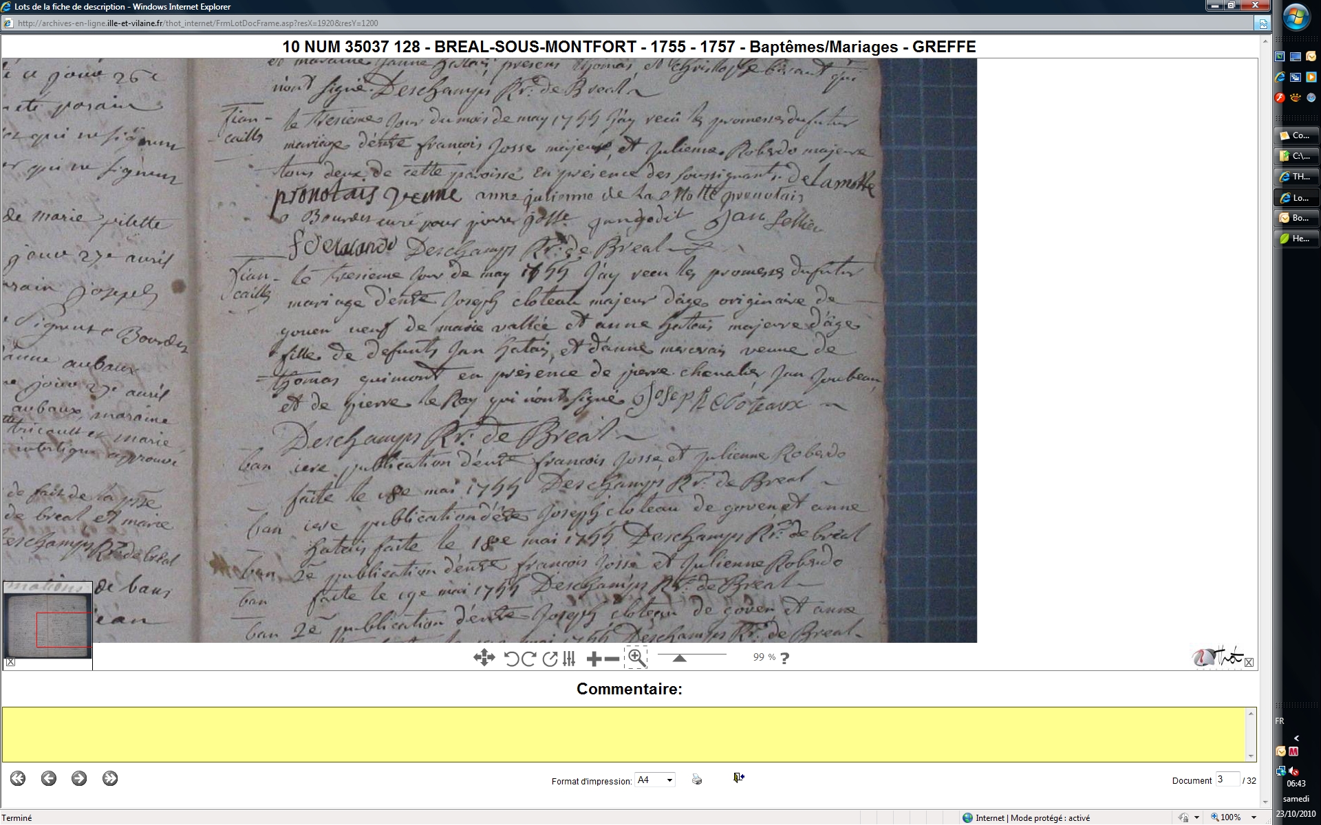 Bans : 19 mai 1755 à Goven 35580 Mariage : 8 juillet 1755 à Bréal-Sous-Montfort 35310