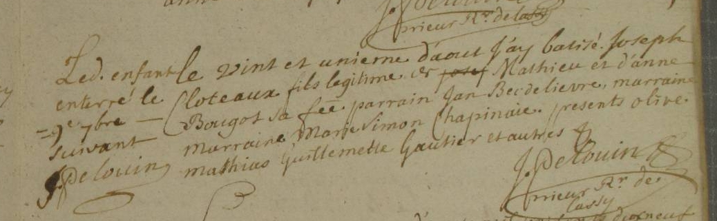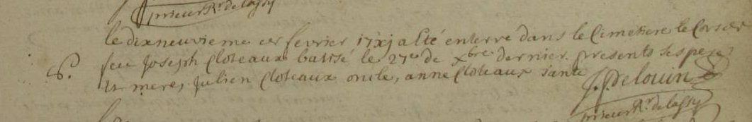 Témoins :CLOTEAUX Philippe ( 1688 - 1734 )