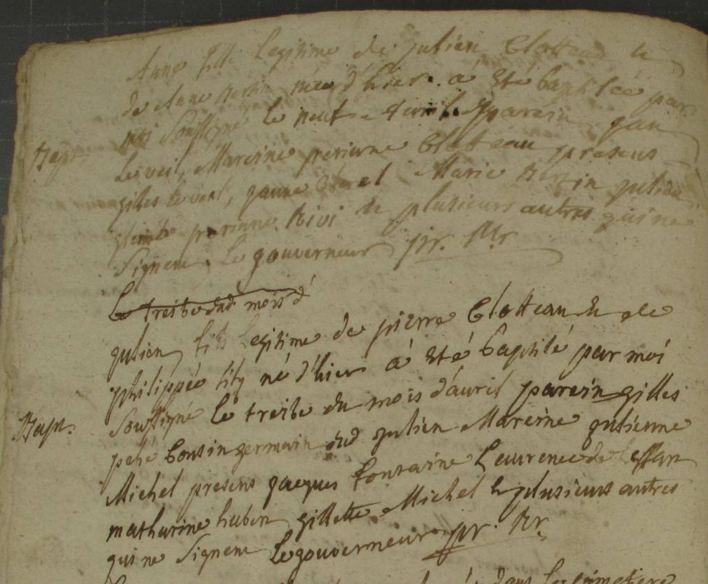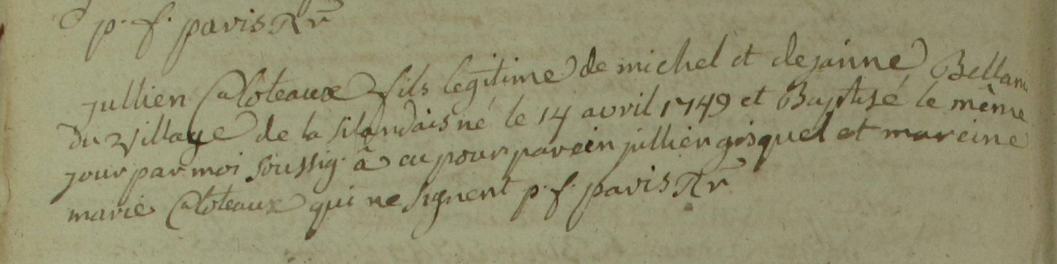 Nom et prénom de la marraine Cloteaux JanneDécès : après 1769