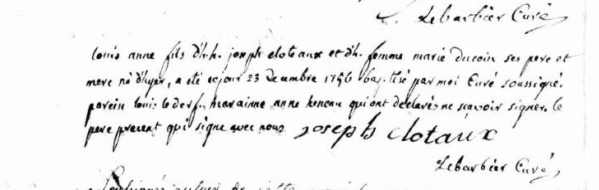 Père : CLOTEAUX Joseph ( < 1732 - > 1756 )