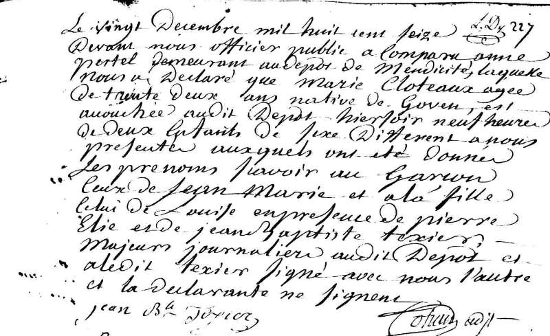 Mère : CLOTEAUX Marie ( 1784 - > 1816 )