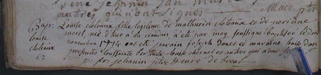Nom et prénom de la marraine Cloteaux Louise