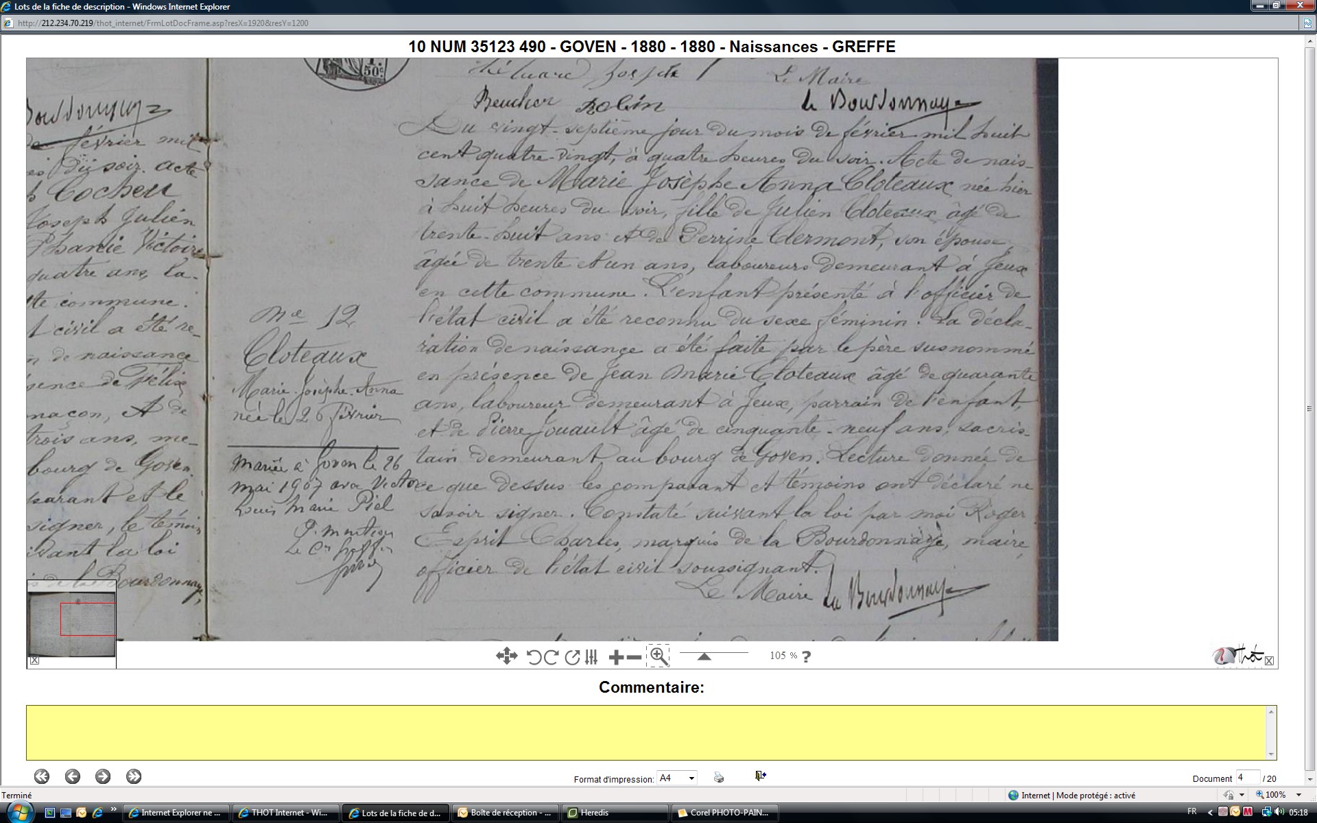 Naissance : 26 février 1880 à Goven 35580 Jeux