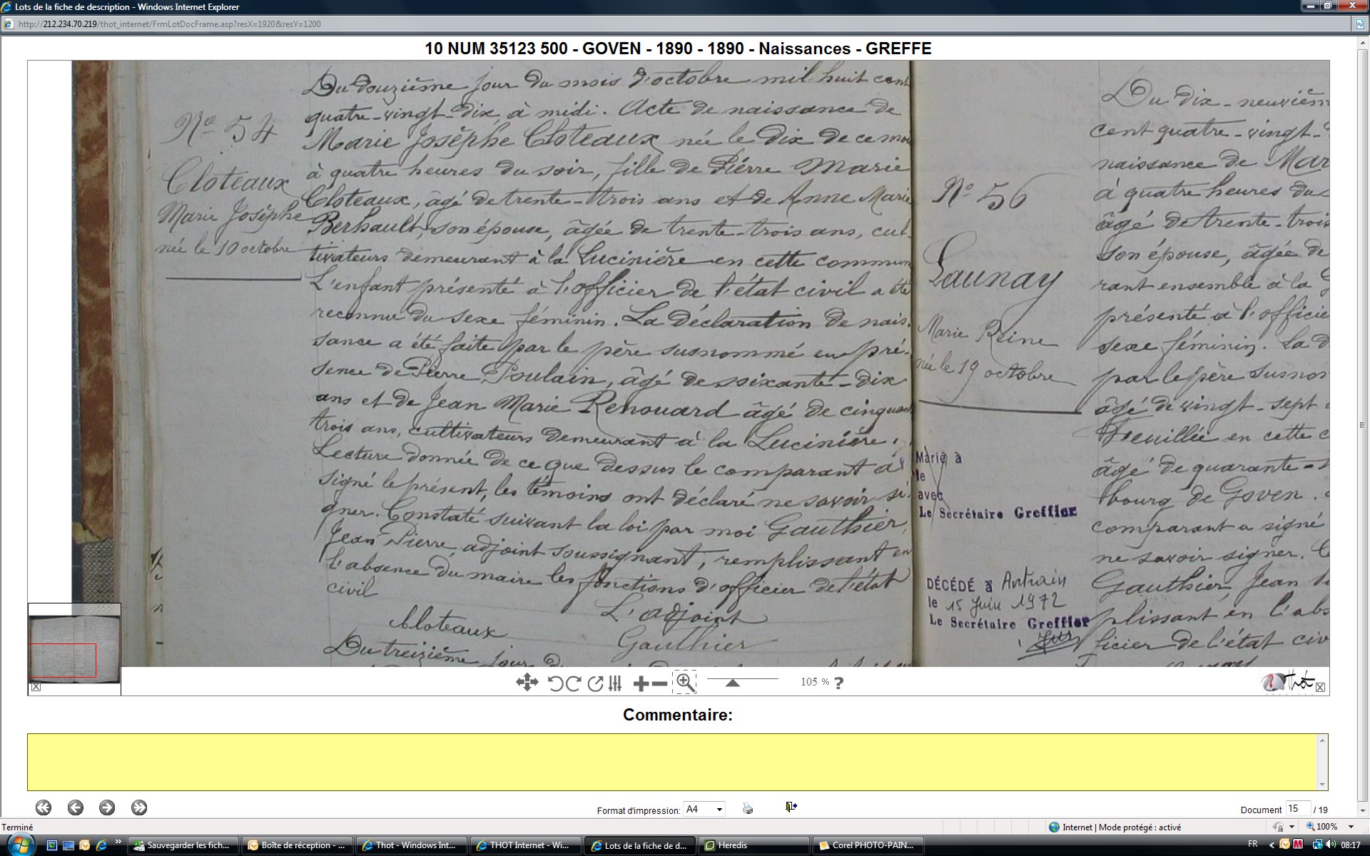Père : CLOTEAUX Pierre Marie Joseph ( 1857 - 1892 )