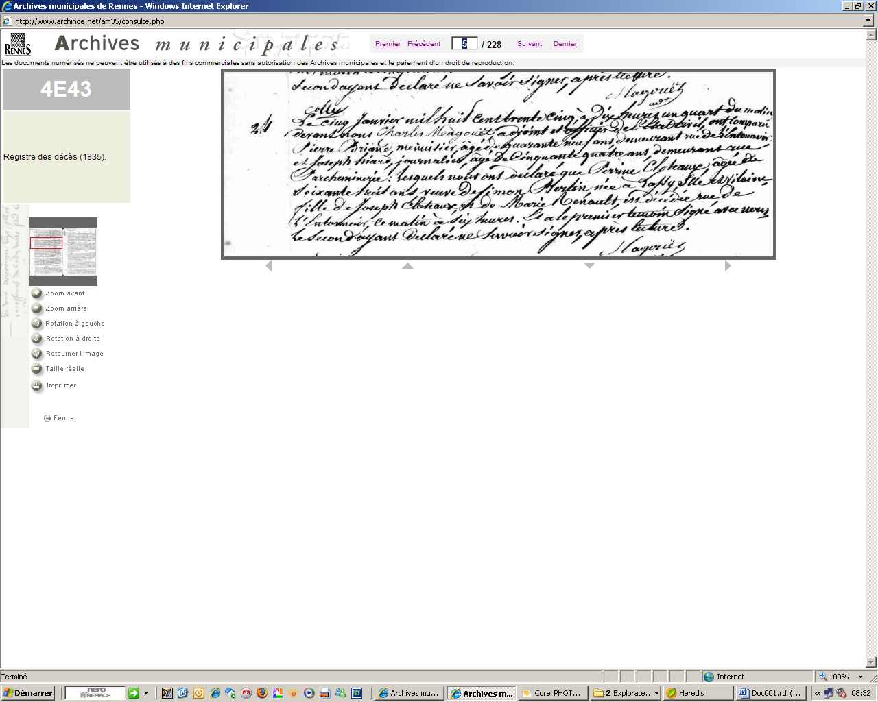 Décès : 5 janvier 1835 à Rennes 35000 Rue de l'Entonnoir