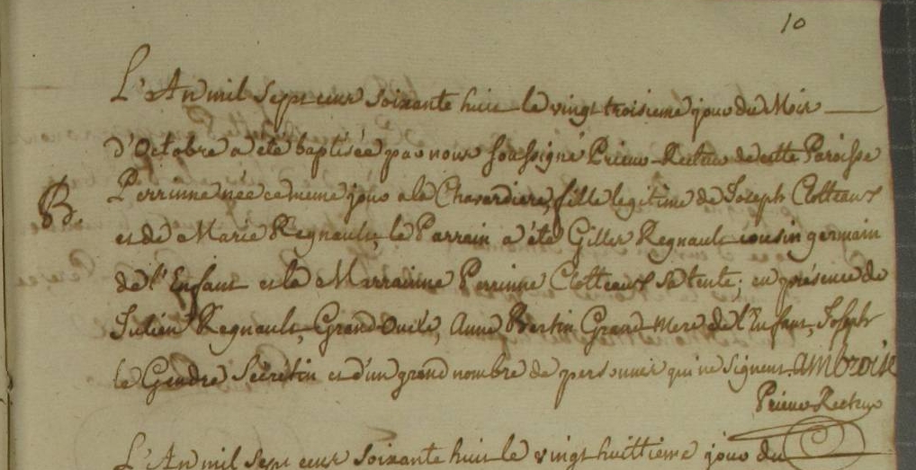 Nom et prénom de la marraine Cloteaux Perinne