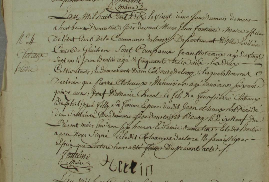 Décès : 20 mars 1810 à Lassy 35580 Bourg